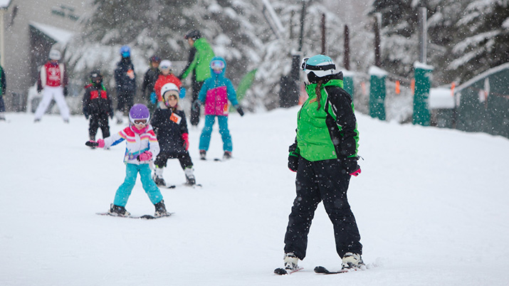 1st Time Lessons for beginner skiers and snowboarders. Our 1st Time Skiing / Snowboarding Lesson package provides everything you need for a day on the slopes including rentals, lift access and instruction. Jiminy’s beginner ski and snowboarding lessons are run out of the Doc Maynard Building and utilizes specialized equipment, combined with Terrain Based Learning, to create a self-contained, dedicated learning environment, specifically designed for beginner skiers and snowboarders. Our 1st Time Skiing / Snowboarding Lesson program makes learning quicker, easier and way more fun