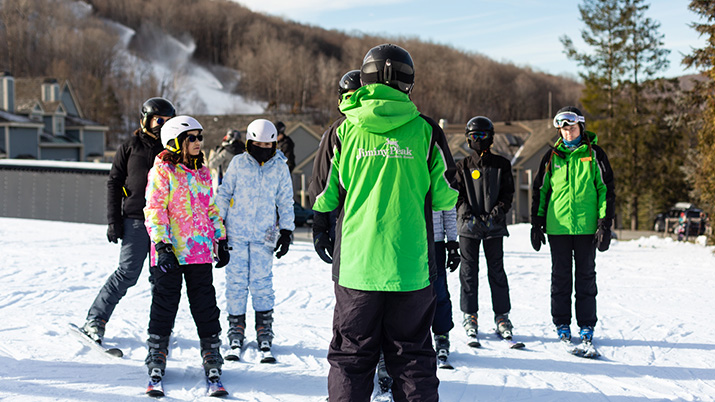 At Jiminy Peak Mountain Resort, we reimagined the snowsport learning process, making it one of the best places to take a group ski lesson in New England. Stop the frustration of self-teaching and let one of our experienced instructors guide you through with Terrain Based Learning. Terrain Based Learning is a more intuitive style of instruction than you have ever experienced at a ski area. Not only will you learn at a faster rate, but it’s more fun too! We also limit our class sizes, so you can learn in a more intimate setting with maximum instructor time. What’s not to love about that! Our group ski and snowboard lessons will have you confident in your abilities in no time! Book a lesson today!