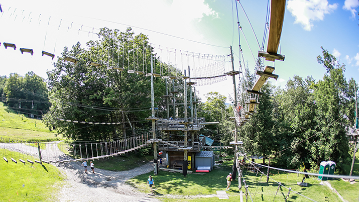 Our aerial adventure park in Massachusetts is a self-guided, elevated outdoor ropes course through the trees. It consists of varying levels from “beginner/easier” to “advanced” aerial courses and includes a variety of challenges including:
